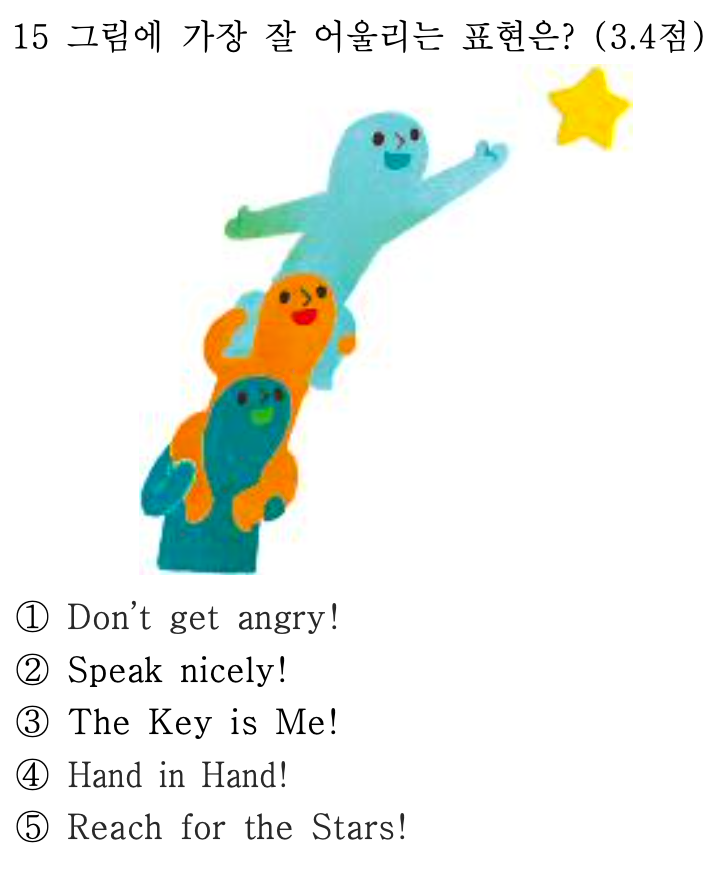 그림에 가장 적합한 표현을 고르는 것이라 별을 빼고 말을 할 수는 없는 것 같아요.