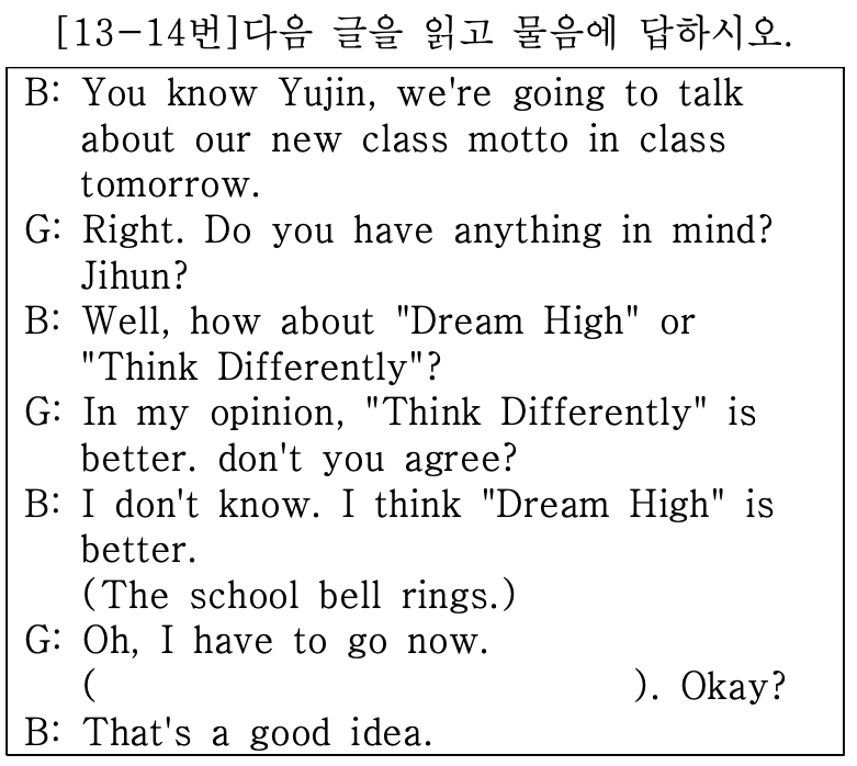이 둘의 대화의 주제가 어떻게 되는지 생각하며, 문제를 봅시다.