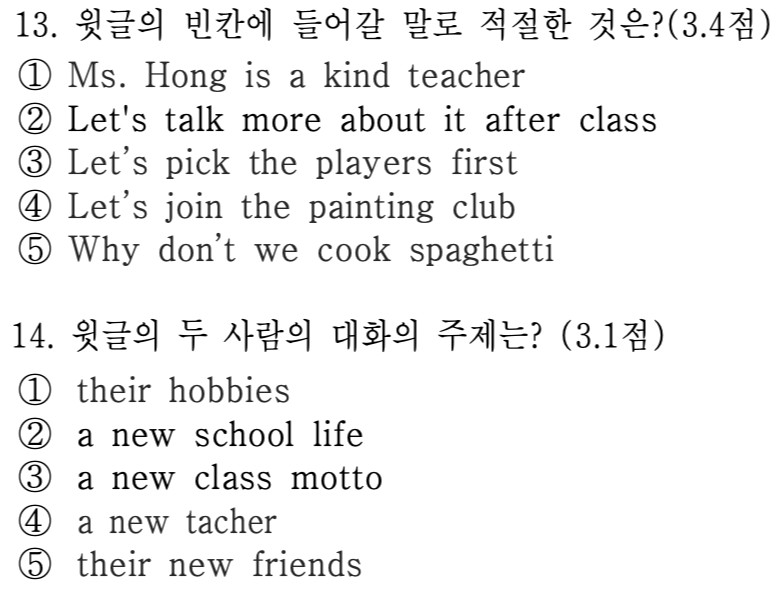 오늘은 두 사람의 대화를 읽고 두 개의 문제를 풀어 볼 건데요,