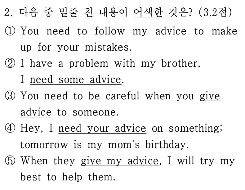 어색한 부분을 찾는 문제에서는 밑줄 친 부분의 앞과 뒤를 잘 봐야 하는데요,