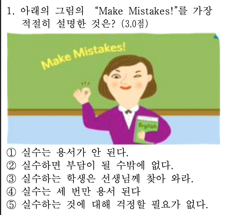 정답은 5번, 실수하는 것에 대해 걱정할 필요가 없다. 입니다.